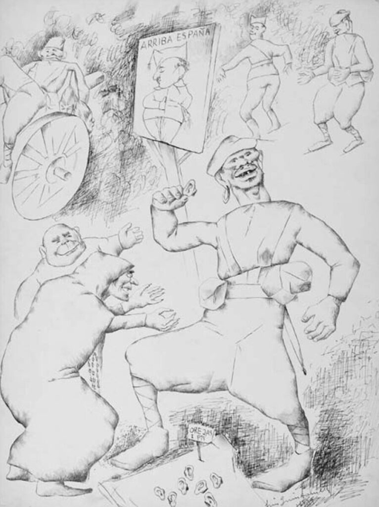 خطاب فرانكو حوّل المور إلى موضوع صراع سياسي. أنتجت السلطة السياسية خطاباً مولعاً بالمور، أو كما يقال عنه في إسبانيا "موروفيليا". وفي المقابل، أنتجت المعارضة خطاباً مضادّاً يتناول الفضاعات والمجازر التي ارتكبها فرانكو وجنوده. مع تركيزٍ خاص على دور "مور فرانكو"، وهي التسمية الشائعة إلى اليوم للدلالة على المقاتلين المغاربة الذين شاركوا في الحرب الأهليّة. تتجلى أهمّ مظاهر هذا الخطاب المضاد في أعمال الرسام الإسبانيّ والمثقف اليساريّ لويس كينتانيّا، المتوفى سنة 1978. جسّدت لوحاته مشاهد الحرب الأهلية الإسبانيّة. جمِعت لوحات كنتانيّا المصوّرة لمور فرانكو في كتيّبٍ اسمه "إسبانيا فرانكو السوداء" نُشِرَ سنة 2009. ولم تتضمن هذه اللوحات تصويراً للمغاربة دون غيرهم، وإنّما جسّدت كلَّ حلفاء فرانكو في الحرب الأهليّة من الجنود النازيين والفاشيين. ولكنّ اللافت في رسوم كنتانيّا هو أن تصويره المغاربة كان أشبه بتجسيدٍ لتلك الرؤى التي تبناها فرانكو عنهم. فمن جهة الشكل والملامح، صوّر كنتانيّا المغاربة على هيئةٍ وحشيّة أشبه بالقردة من البشر. فجعل لهم رؤوساً ضخاماً وأفواهاً متسعةً ووجوهاً تنبئ بالبلاهة والشرّ.